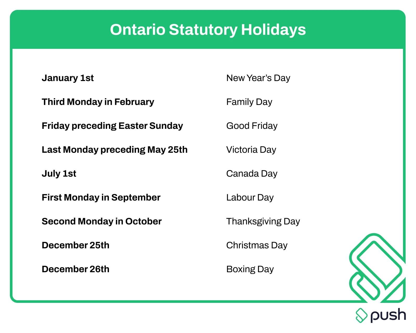 Planning around stat holidays Ontario 2025